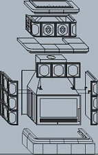 Духовой шкаф оснащен противнями и решетками для размещения в духовке на трех уровнях. Также печь снабжена полками-столешницами для установки на передней и одной из ее боковых сторон.