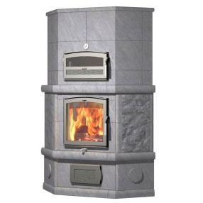 Верхнее подключение дымохода. Угловая печь-камин с духовкой. 3 тепловой класс.