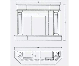 Этот камин, изготовленный из натурального камня черного и белого цвета, сочетает в себе простую форму и оригинальный дизайн. Контраст между колоннами и светлой частью фасада делает эту модель эффектной и запоминающейся.