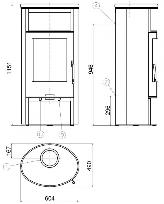 - Диаметр дымохода, (мм) 150